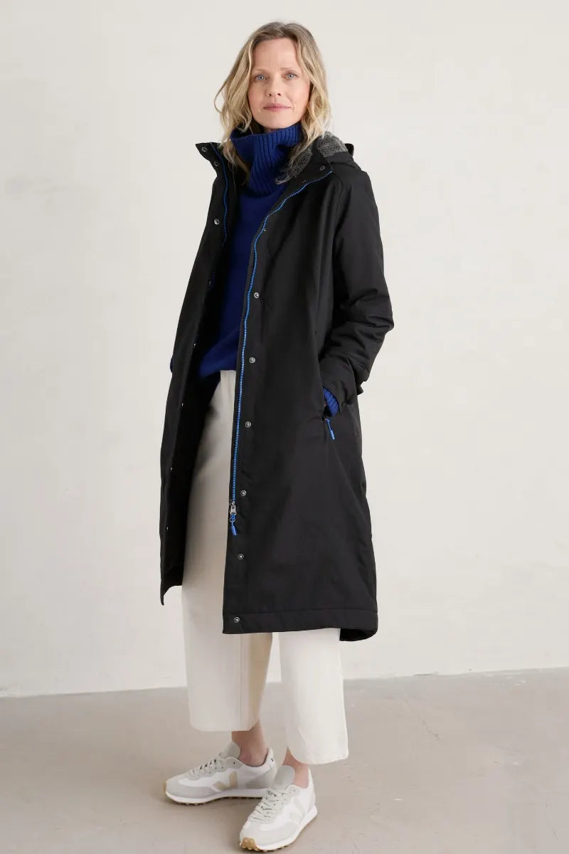 Great winter coat from Seasalt Cornwall. It is very light, warmly lined, breathable and waterproof. The coat is also very comfortable to wear and has beautiful details. With a water/wind column rating of 5000, it is suitable for all weather conditions.