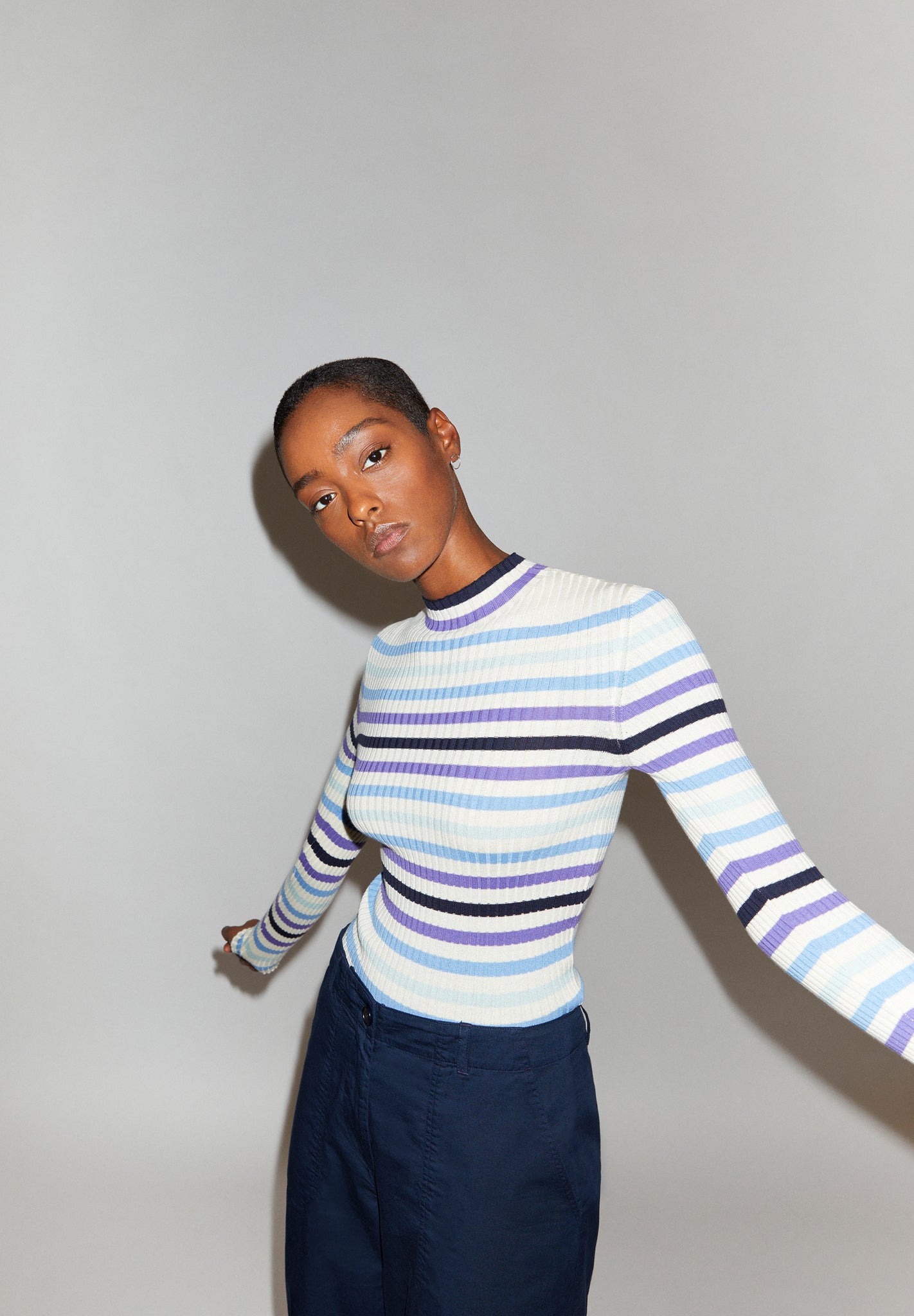 Our must-have!!! Timeless, lightweight sweater with stand-up collar made from pure organic cotton in a ribbed look. The ideal companion for any outfit. Simple, simply...