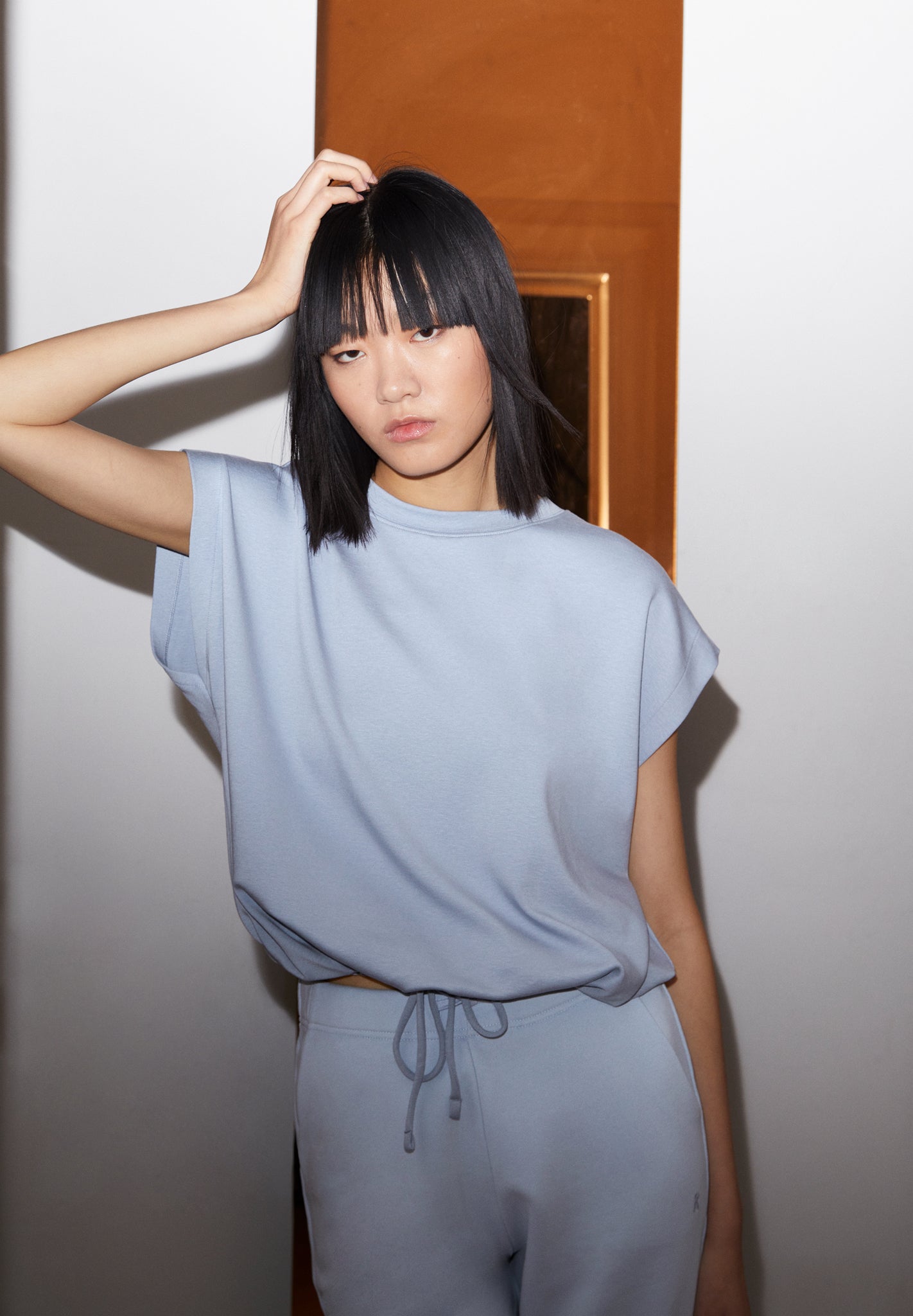 Pretty short-sleeved sweatshirt made from Tencell Lyocell mix. Drawstring at the hem. Casual, cool look for every day.
